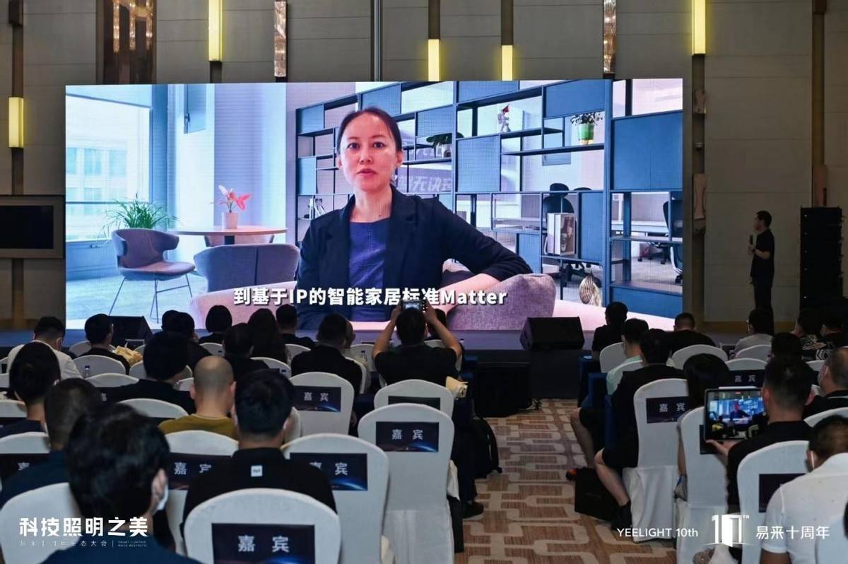 众多周知,智能家居可以大幅提升消费者的家居生活体验,但行业快速发展的同时也产成了生态割裂、标准混乱的痛点。因此,Matter协议应运而生,其是智能家居领域一个新兴的连接标准,由亚马逊、谷歌、苹果等全球科技巨头与CSA连接标准联盟共同创立。本次会议也很荣幸地邀请到CSA连接标准联盟中国区代表商瑞云女士,为本次会议带来精彩致辞,并为在场嘉宾介绍了Matter协议的特点与优势。商瑞云表示,“Yeelight易来经过10年来的创新和发展,已经成为行业和消费者耳熟能详的智能照明品牌,跻身行业领导者之一。其致力于构建开放、兼容、用户友好的智能照明生态,这与联盟通过开放标准让智能设备互通、造福人们生活的愿景十分契合。期待易来在未来持续为用户带来更智能、更便捷、更健康的光环境体验”。