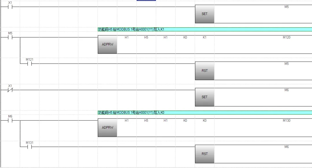 打开【fx5 modbus主站.gx3】主站程序源代码