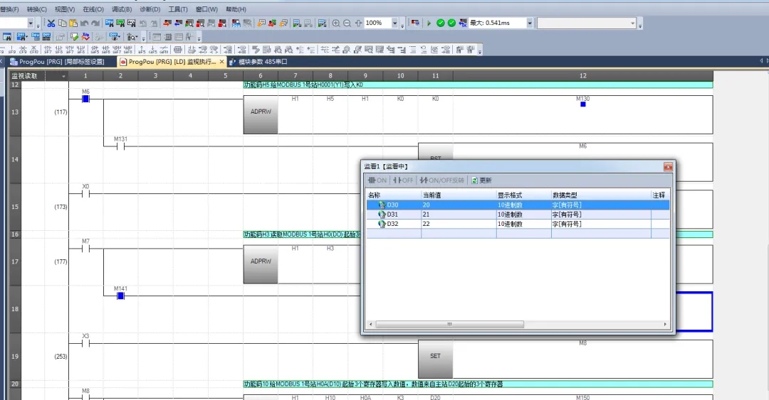 3.监控主站寄存器D30 D31 D32