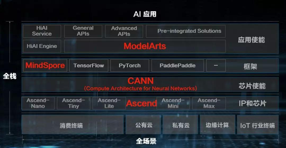 全栈意味着华为有能力为AI应用开发者提供强大的算力和应用开发平台;有能力提供大家用得起、用得好、用得放心的AI,实现普惠AI。