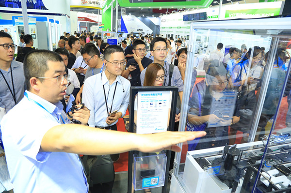 在2018工博会上,台达模拟生产现场的智能生产线成为台达展台、乃至整个工博会最为火热的展品之一。来宾可在终端上下单,制造执行系统(DIAMES)执行生产实时调度和制造管理,机器人工作站执行工件取放、包装,最后完成礼品出货/入库等作业;在此期间,生产管理人员可实时监看作业进度及设备运作数据。