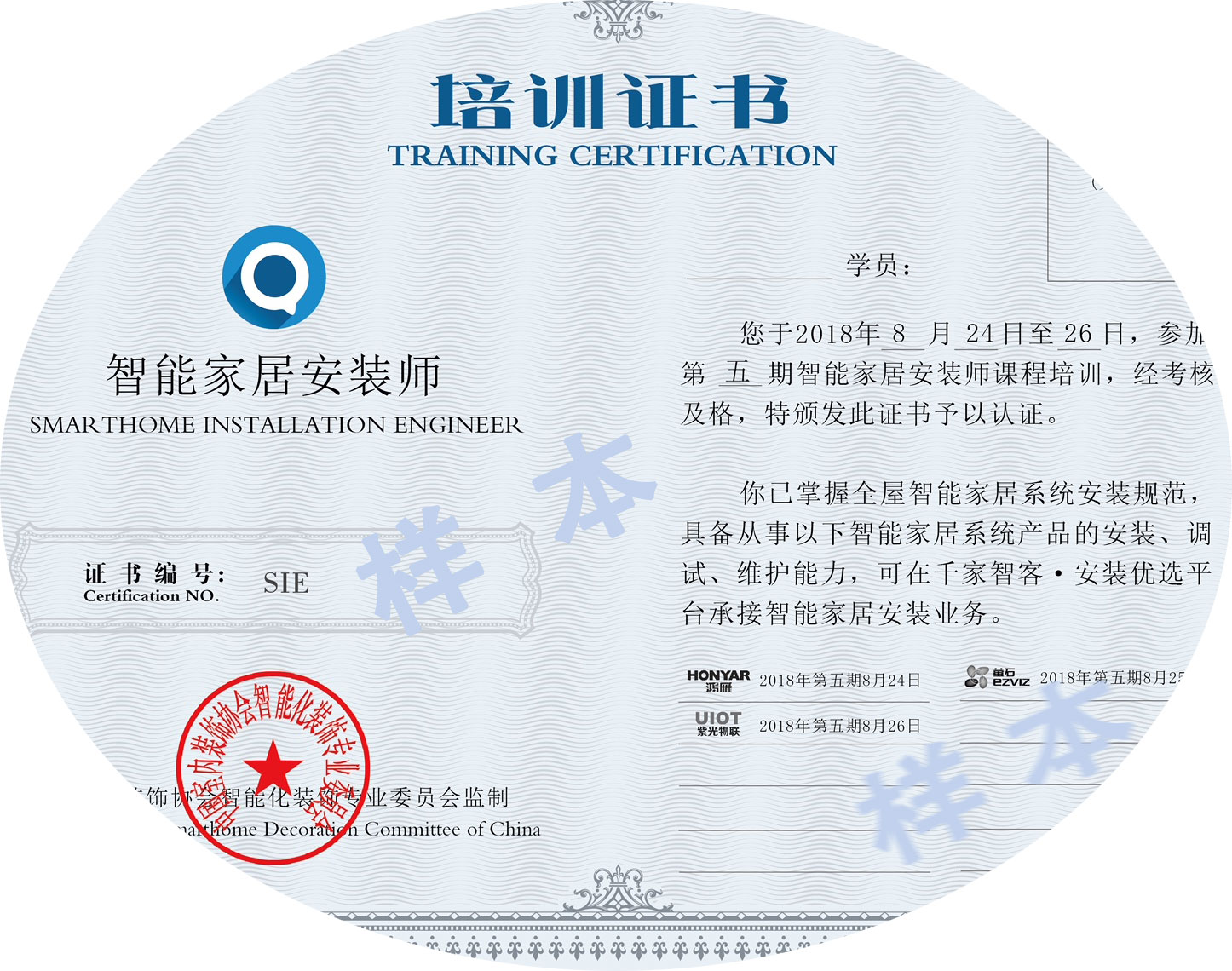 从第五期能家居安装培训开始,智能家居安装师培训结业后获得的证书也已经升级,是双认证:中国室内装饰协会智能化装饰专业委员会的认证和千家智客安装优选平台的认证。证书将获得智能建筑、智能家居、装饰、家居领域的广泛认可。学员结业后可注册成为安装优选平台执业的“智能家居安装师”,承接各地的智能家居安装业务,无论是房地产与物业公司的智能家居前装业务,还是智能化装饰及家庭个人购买智能家居产品后的后装业务。“安装优选”智能家居安装师也可以接受相应的智能家居品牌委托的安装任务。