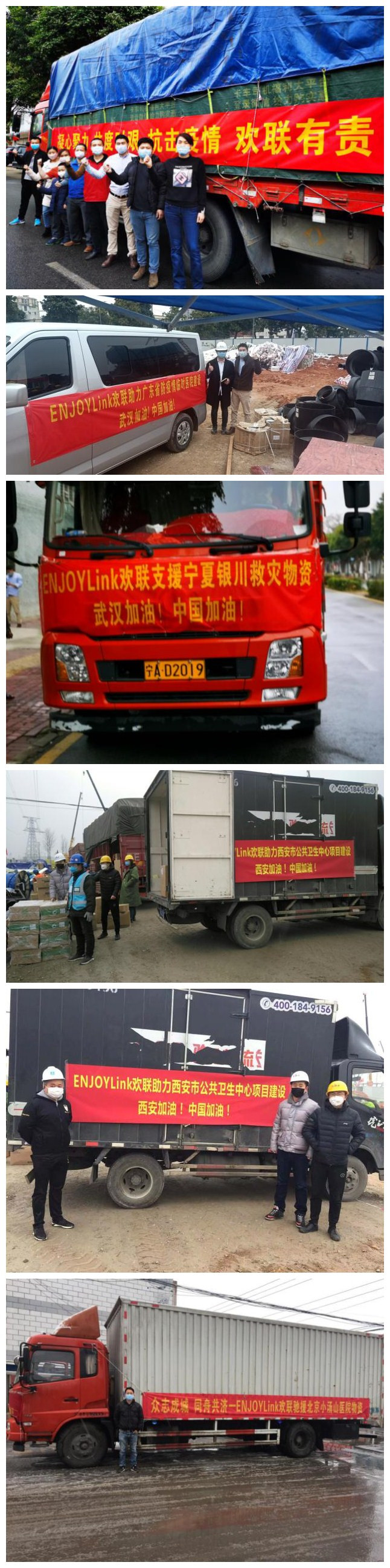 2月5日,ENJOYlink欢联又向宁夏银川防疫情临时医院建设贡献出了自己的力量:增派专车进行运送,本次输送的物资有网络线缆、弱电线缆、机柜、面板、模块等产品近百万元,后续还将输送更多产品。