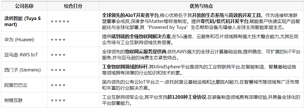 物联网行业参与者众多,各家企业基于自身资源禀赋形成了不同的竞争优势。下面表格整理了该领域的主要企业及其特点: