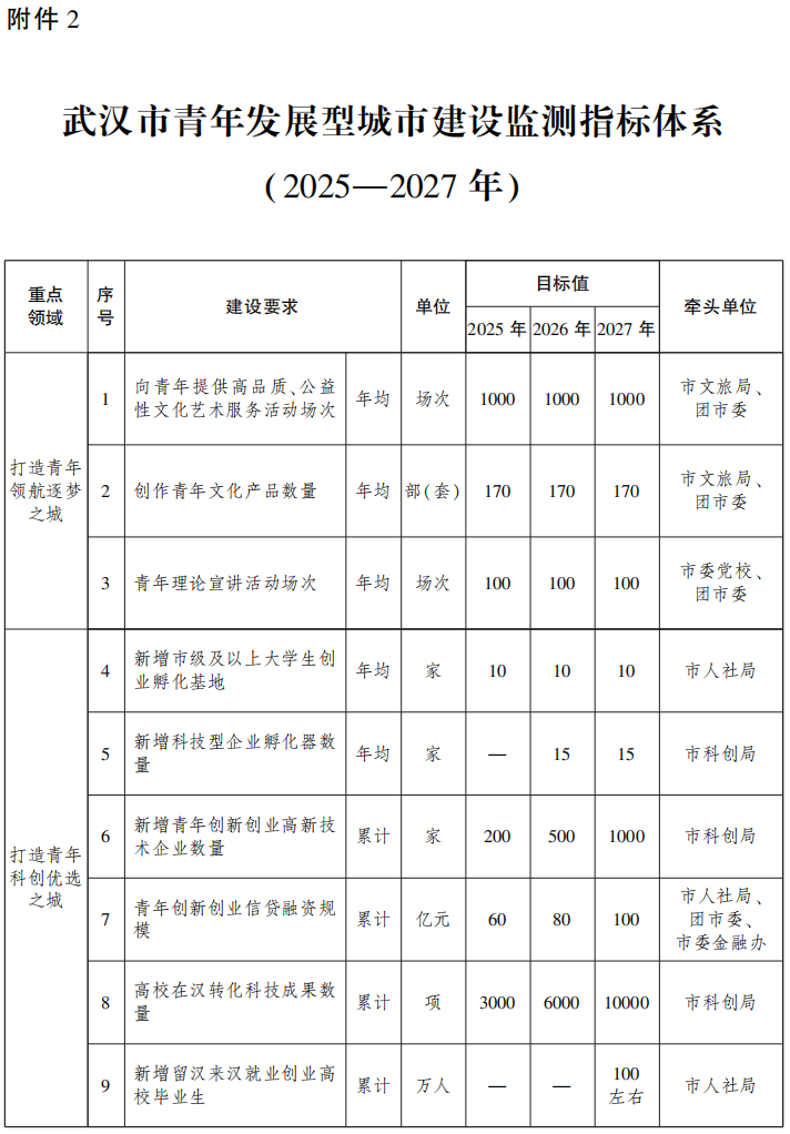 武汉市加快建设青年发展型城市三年行动方案(2025—2027年)