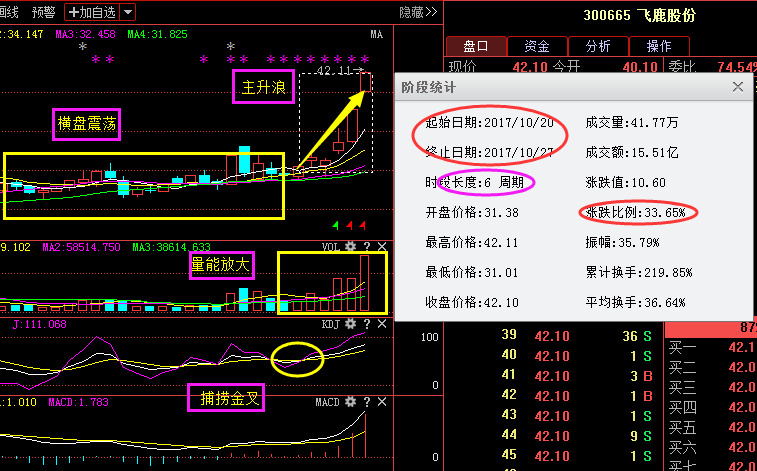 选股理由:飞鹿股份(300665)这支票是雨偌10月20号发布在专栏进行讲解的。在选出此股之前雨偌就发现此股前期一直处于一个震荡吸筹的状态,但是主力资金是在缓慢进场,直到25号主力开始放量。给出了最佳买点,之后股价开启主升浪,直线拉升。仅仅6个交易日,涨幅高达33.65%。这也是关注了雨偌专栏文章的朋友所能把握到的一波收益,对于此股后续的操作也会持续在专栏中更新讲解。想学习选强势股和买卖点操作技巧的朋友可以联系雨偌,添加雨偌微信【w50292320】,QQ【106699719】,放心,都是不收费的。