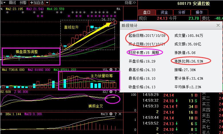 通过多年的实战笔者也是总结出来一套选股法,就像之前的方大碳素、乐心医疗、武汉凡谷这样短线大涨的股票,都是通过这种选股方法所选出来的,每一只的涨幅都是相当可观的。我们一起来回顾一下近期所选出来的几只利好个股的走势情况:第一只:安通控股(600179)