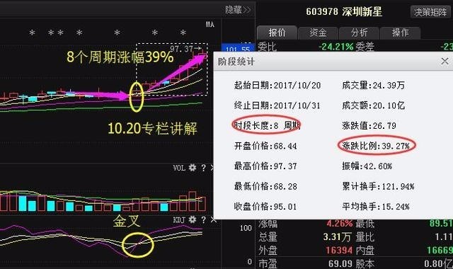 深圳新星(603978),该股是在10月20号选出,并在专栏中发文讲解。其股价当天回踩支撑线,而资金方面确是流入状态,典型的量价背离形态,因此通过回踩支撑线法果断的选出该股,并及时介入,截止目前,短短8个交易日,该股大涨39%。很多朋友当时能提前看到本人的专栏中的选股文章,到现在都是获益匪浅的。想学习选强势股和买卖点操作技巧的朋友可以联系雨偌,添加雨偌微信【w50292320】,QQ【106699719】,放心,都是不收费的。