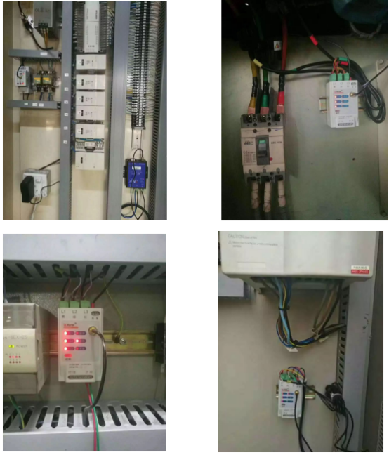 L1、L2、L3开口式传感器分别通过穿刺接入A相、B相、C相线缆,其中A相传感器通过穿刺线缆及N线端子取电为计量模块供电,同时A相、B相、C相传感器分别将电压、电流信号通过信号连接线传输给计量模块,计量模块通过无线或者RS485方式将测试数据传输至后台终端。