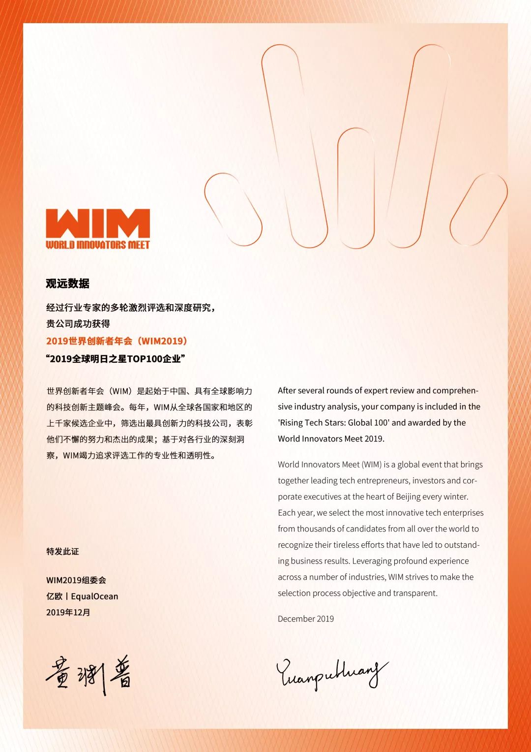 活动现场,亿欧网重磅发布了《2019全球明日之星100及中国明日之星100企业研究报告》。观远数据作为新一代智能数据分析平台服务商荣登「2019全球明日之星100」榜单。