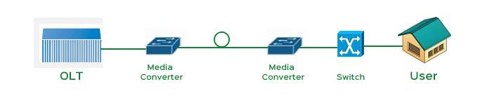 以太网(Ethernet)+媒体转换器 MC(Media Converter)就是一种过渡性的点对点FTTx方案,使用MC方式将电信号转换成光信号进行长距离传输。采用点到点方式具有保证带宽速度、设备端口利用率高、用户信息安全性较好、传输距离长服务区域大等优势。但同时需要铺设大量的光纤和光收发器,设备成本高。