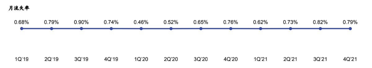 (图为 Peloton 续费人数月流失率.来源: Peloton 2019-2021公开财务报告)