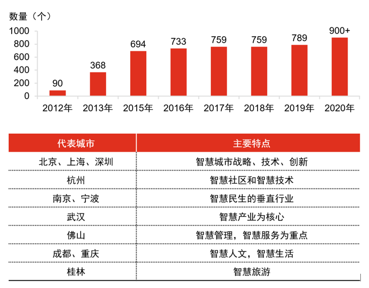 近年来,中国着重发力城市智慧化建设,中国的城市发展正逐步向高质量的“新型智慧城市”迈进。自2015年起,中国智慧城市飞速发展;2019年中国智慧城市高达789个;截止2020年12月,中国智慧城市已有900余个,在战略、技术创新、社区、民生、政务管理、人文旅游等多个方面,涌现一大批代表城市。