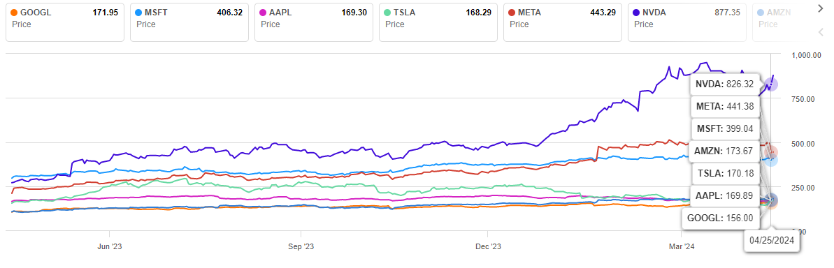 这些基础设施方面的投入,给谷歌打下产品技术基础的同时,也让资本看到了谷歌的潜力所在,有机会改变其在七大科技股中的股价和市值地位。