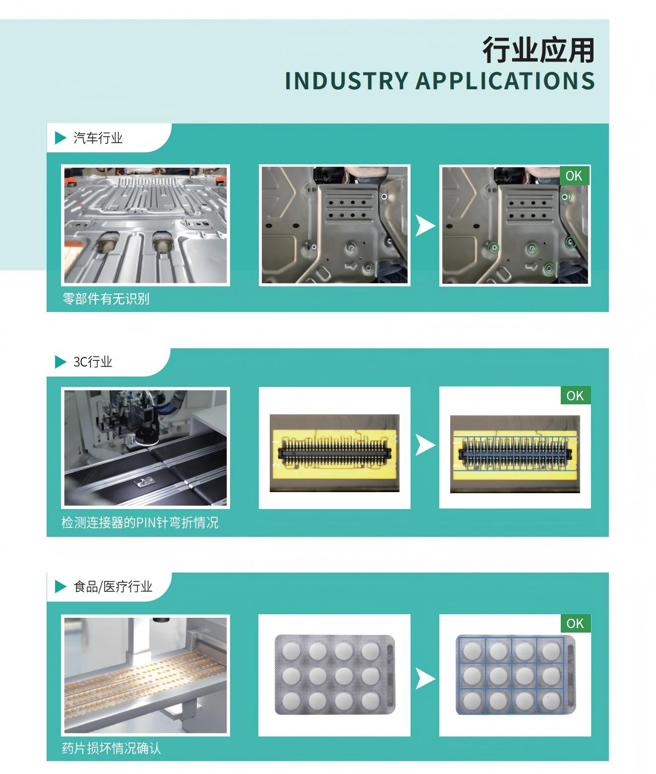 - 典型应用:广泛应用于产品质量检测、尺寸测量、定位识别等领域,特别是在需要高精度、高速度以及复杂算法支持的情况下。